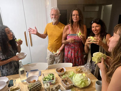 One unique way we find oneness and connection is to co-create food together. Small groups create a meal and we sit together to enjoy. There is so much that comes from this. It is a practice Kirsten gained from being maori on the Marae - where we host manuhiri (visitors) of up to 150 people and people also sleep together in the big whare nui (sleeping house). This small retreat duplicates this practice which gives a taste of the once old memory your cells have of co-creating vs separation.